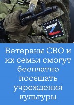 Минкультуры России и фонд «Защитники Отечества» запустили проект для ветеранов специальной военной операции и членов их семей, согласно которому они смогут бесплатно посещать федеральные учреждения культуры в рамках проекта, сообщили РИА Новости в пресс-службе ведомства.